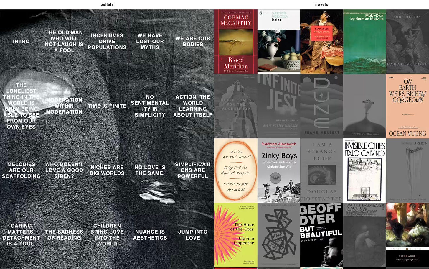 He wrote down his beliefs through poetry and prose. He noted others' novels and reframed their quotes. He joined those quotes with his growing beliefs, and then lost track — as he fed on his own reflections.